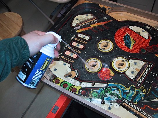 ![]() Using the freeze spray to attempt to remove the Mylar pop bumper ring. This one didn't budge! |
